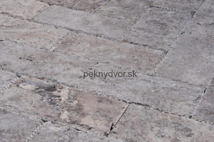 Formátovaná kamenná dlažba určená pre exteriér. Strieborný travertín v prevedení tzv. paver vo formáte 30,5×15,2cm o hrúbke 3,2cm používaný ako vonkajšia dlažba vhodná na terasy, chodníky alebo parkovacie miesta.