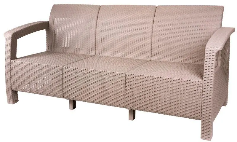 Sedačka je vhodná pre umiestnenie v exteriéri, napríklad do záhrady alebo na terasu. Sedačka ponúka tri miesta na sedenie. Jej rozmery sú 175 x 70 x 80 cm a nosnosť až 300 kg. Je vyrobená z materiálu odolného voči UV žiareniu a vonkajším vplyvom, čím si zanechá svoj vzhľad po dlhý čas. Súčasťou balenia k sedačke nie sú podsedáky pre sedenie ani opieranie, tie je však možné dokúpiť samostatne, podľa rozmerov sedačky. Farba: capuccino svetlá hnedá.